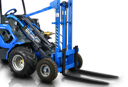 Zdvíhací vozík MultiOne zvyšuje nosnosť menších modelov strojov MultiOne. Zdvíhací vozík je ideálny na zdvíhanie a manipuláciu s ťažkými paletami, nadrozmernými vrecami s materiálom a inými ťažkými materiálmi. Táto jednotka môže byť tiež použitá na nakladanie a vykladanie nákladných automobilov a prívesov. Zdvíhací vozík je vybavený pneumatikami plnenými penou, ktoré umožňujú prepravu na všetkých terénoch. Šírka vidlice je ručne nastaviteľná na prispôsobenie rôznym veľkostiam paliet. Poznámka: Odporúča sa ventil plávajúcej polohy ramena na stroji.