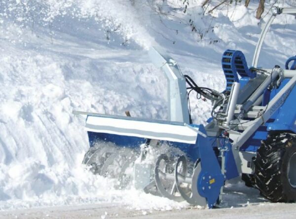 Snehová fréza je účinná metóda na odstránenie veľkého množstva snehu z chodníkov, ciest alebo iných veľkých plôch, keď je potrebné sneh rovnomerne rozprestrieť. Dvojstupňová fréza poskytuje výkonný a efektívny nástroj na odstraňovanie snehu, aj keď je sneh mokrý a ťažký. Na dosiahnutie tejto účinnosti slimák rozdrví sneh a ventilátor vyhadzuje sneh z vyhadzovacieho žľabu. Komín je možné elektricky otáčať o 200 ° (+/- 100 °) a tiež možno elektricky nastaviť uhol výškového sklzu komína zo sedadla obsluhy. Je vybavený nastaviteľnými lyžinami, na nastavenie pracovnej výšky a nástrojom na odstraňovanie snehových nánosov. Poznámka: Odporúčaný ventil plávajúceho výložníka na stroji